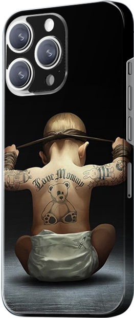 565 (Bottom Left): This design depicts a seated child with multiple tattoos on their back, set against a dark background. The style is mysterious and highlights individuality. The main colors are black and brown.