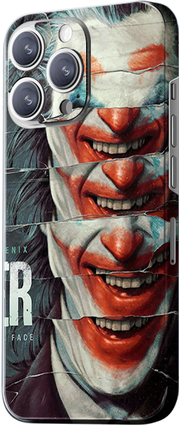 371 (Top Right): This design shows multiple overlapping images of the Joker’s face, with an exaggerated smile, creating a chaotic visual effect. The main colors are red, white, and black, giving the design a theatrical and villainous tone.