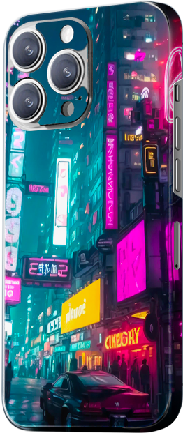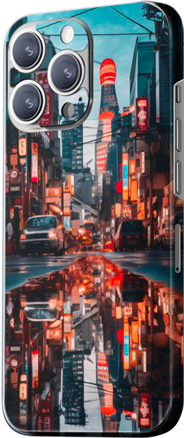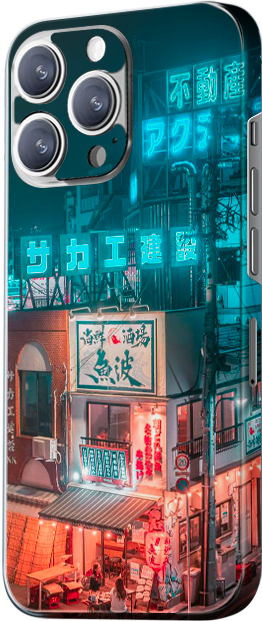 This design showcases a bustling Japanese night market, with colorful shop signs and lights, reflecting the city’s busy and lively culture. The main colors are blue, orange, and green, giving it a rich and cultural feel.