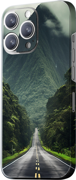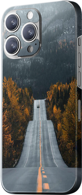 1517 (Top Left): The design features a straight road flanked by golden autumn trees, with distant mountains adding to the natural grandeur. The main colors are gray, gold, and green, giving the design a simple yet nature-filled aesthetic.