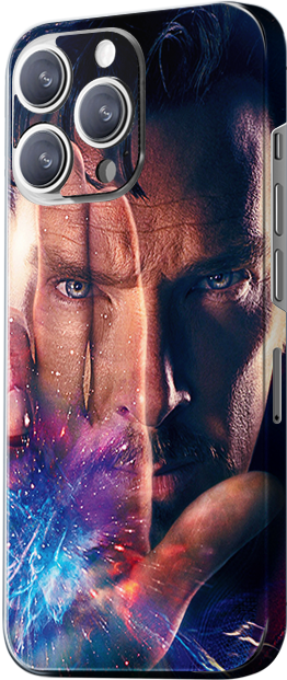 649 (Top Left): The design features a close-up portrait of Doctor Strange, with mystical energy radiating in the background. The overall style exudes power and technological mystique. The primary colors are blue and purple.